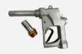 Металевий паливозаправний пістолет для дизельного або бензинового палива на білому фоні.