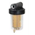 Фільтр тонкого очищення дизельного пального з прозорою колбою об’ємом 2 літри. Фільтр, при низьких протоках, відстоює воду (до 93%), яку можна злити, за допомогою спеціального крана. Даний багаторазовий фільтр застосовується для очищення палива від механічних домішок. Легко розбирається для заміни картриджа.